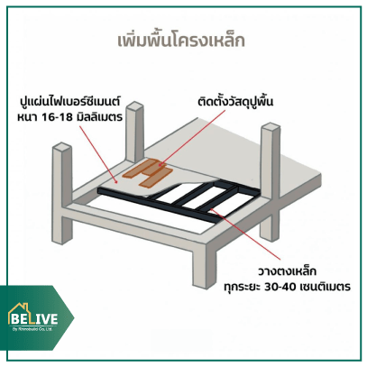 - เพิ่มพื้นโครงเหล็ก