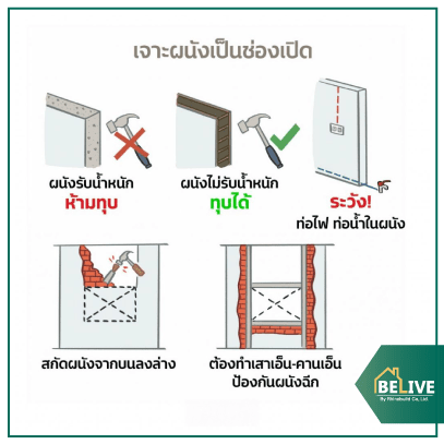 - เจาะผนังเป็นช่องเปิด